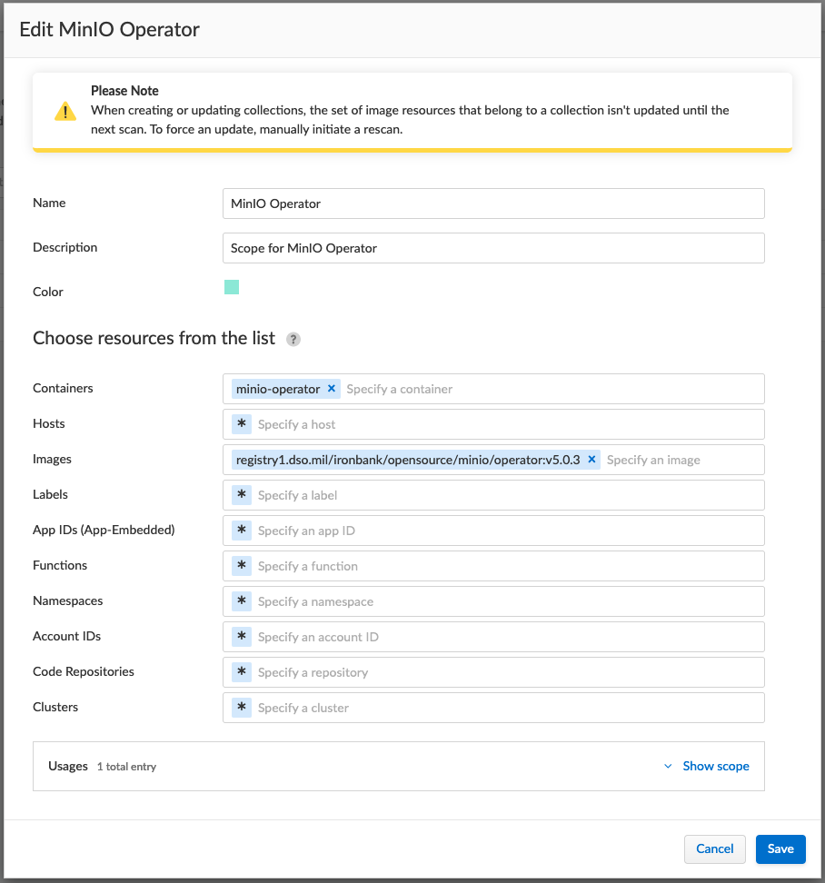- Fill out the resulting form, defining containers, hosts, etc. to configure your new scope.